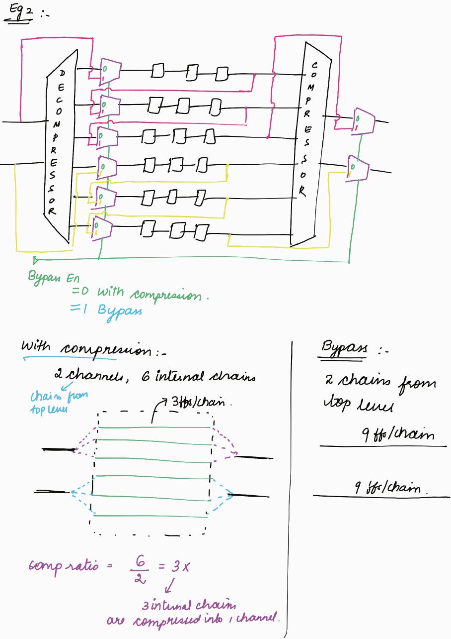 When Bypass_en = 1, the EDT logic (Decompressor logic and Compressor logic) is bypassed as shown in the above figure.