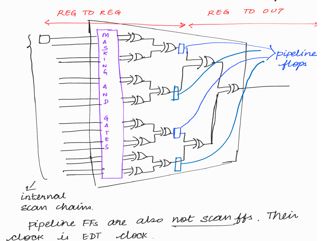 In the above picture, the AND gates in the compressor logic are the masking logic AND gates. The inputs to the masking logic AND gates are scan chains outputs and decoder’s output. We have explored this in DFT Basics : Article #13.