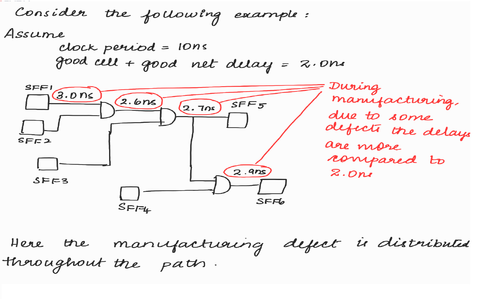 • Path delay fault model is used to detect some manufacturing defect that is